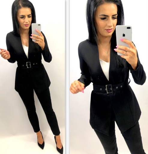 Женский костюм с ремнем и пряжкой, ТЕМНО-СИНИЙ XL