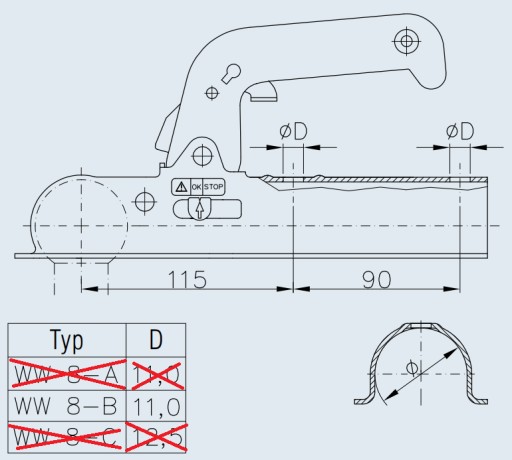 Zaczep kulowy renomowanej firmy Winterhoff WW 8-B fi 60 + uchwyt na wtyczkę - ORYGINAŁ WINTERHOFF !