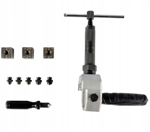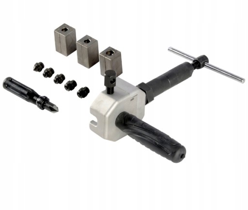Przyrząd do zarabiania końcówek przewodów hamulcowych, hydraulicznych, miedzianych, midziano-niklowych oraz przewodów stalowych.