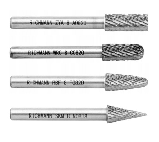 - Wysokiej jakości zestaw 4 szt. frezów trzpieniowych do metalu.