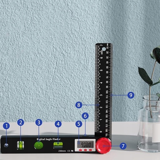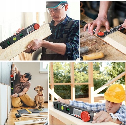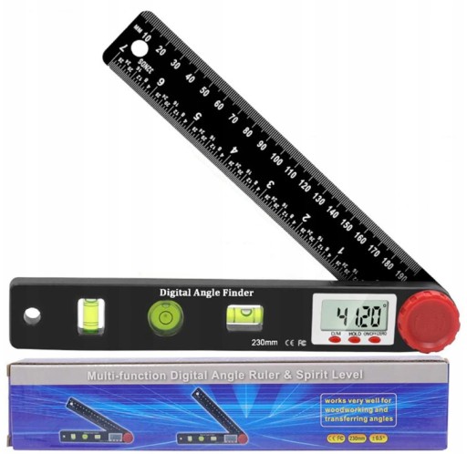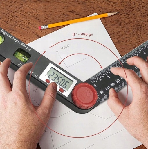 - Może służyć zarówno jako cyfrowy miernik kąta, jak i kątomierz do pomiaru wszystkich kątów warsztatowych, skosów, skosów.