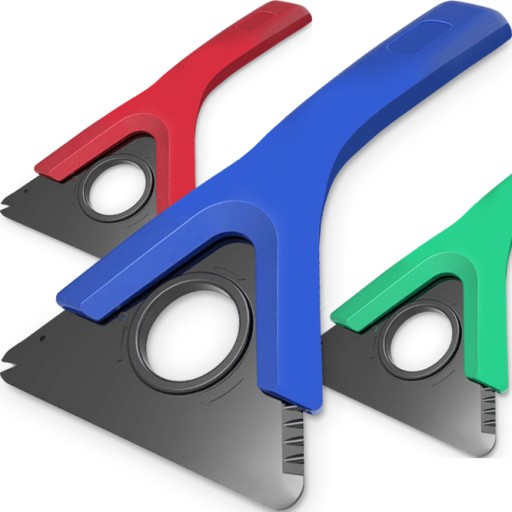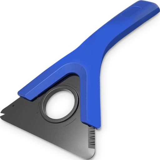 Po wyjęciu skrobaka z uchwytu mamy trzy ostre ostrza skrobaka co znacznie wydłuża żywotność skrobaczki. W skrobaku znajduje się również nacięcie, które ułatwia czyszczenie wycieraczek przedniej szyby. Skrobaczkę do lodu można łatwo przechowywać w bocznej kieszeni drzwi samochodu lub w schowku.