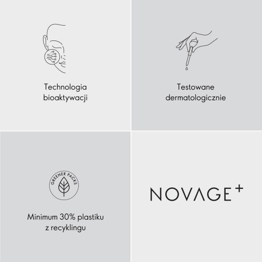 Formuła żelu oczyszczającego Novage+ została tak opracowana, by odpowiadać na potrzeby każego typu cery. Pomaga usunąć makijaż i wszelkie zanieczyszczenia, wspiera zdrowie bariery skórnej, przygotowuje skórę do wchłaniania aktywnych składników formuł kolejnych kroków rytuału Novage+.