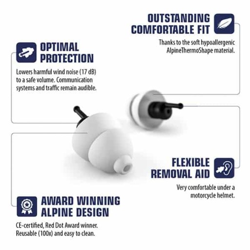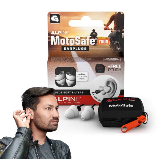 Zatyczki do uszu z filtrem Alpine MotoSafe tłumią szkodliwe dźwięki, jednocześnie zapobiegając uczuciu izolacji. Ruch uliczny, nawigacja, interkom i sam motocykl pozostają wystarczająco słyszalne. Zatyczki do uszu MotoSafe Tour są idealne na wycieczki, wakacje i na autostradowe przeloty.
