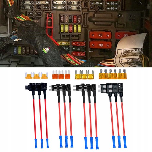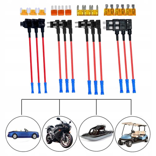 Szerokie zastosowanie: dodaj 1 zestaw adapterów bezpieczników obwodu w połączeniu, zwykle odpowiedni do bezpieczników (prąd znamionowy to 1Amp-30Amp), idealny do alarmu samochodowego, ładowarki do telefonu komórkowego, odtwarzacza DVD, kamery itp.