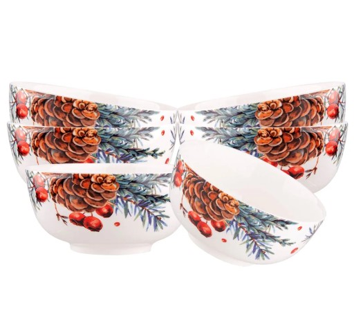 Рождественские суповые тарелки Фарфоровые салатницы с клюквой 14 см Набор из 6 шт.