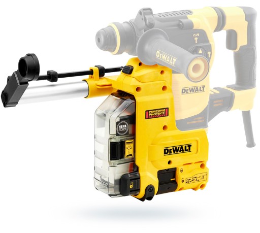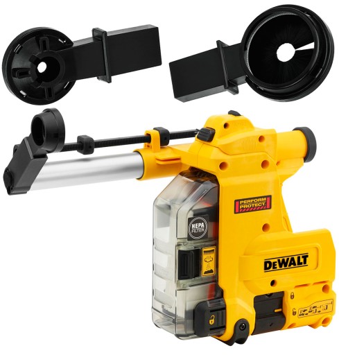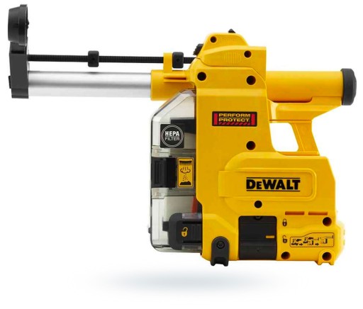 Pojemnik na kurz można podłączyć do odsysacza pyłu DWH079D w celu usunięcia pyłu za pomocą systemów odsysania DEWALT