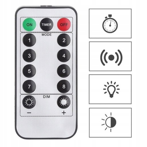 - ✅ 8 opcji zmiany światła (np. miganie, przyciemnianie, światło stałe)