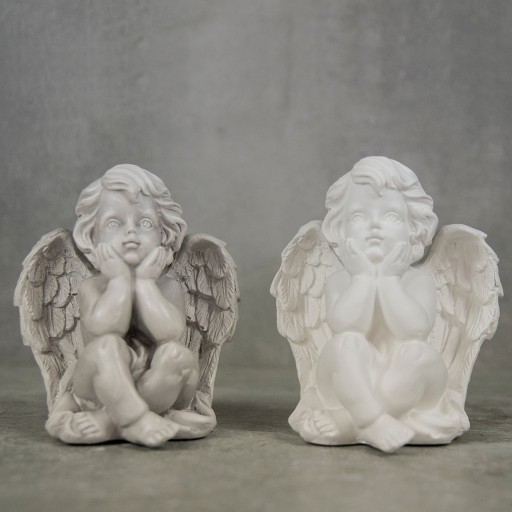 ✅ Ozdobna gipsowa figurka ogrodowa, nagrobna w kształcie aniołka - srebrzona