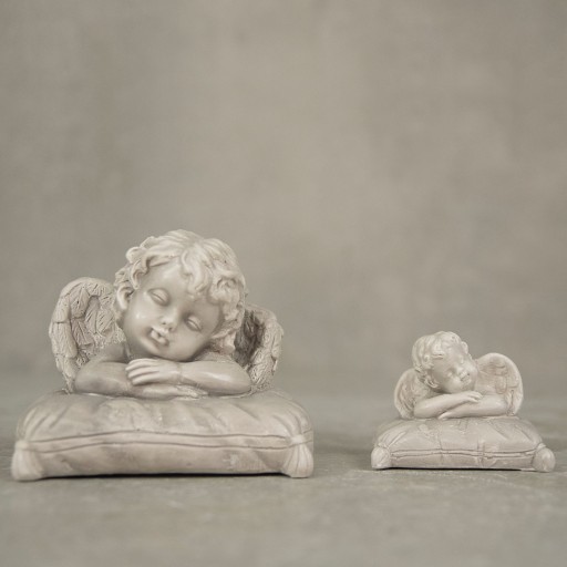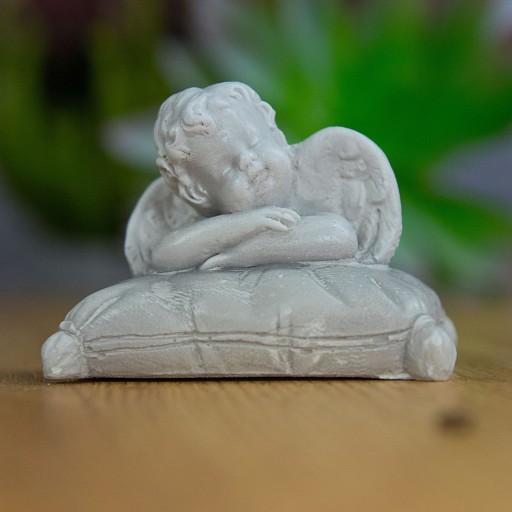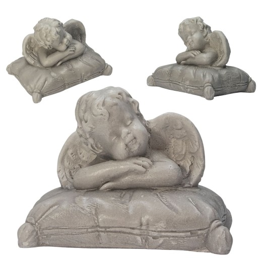 ✅ Ozdobna gipsowa figurka ogrodowa, nagrobna w kształcie aniołka - srebrzona