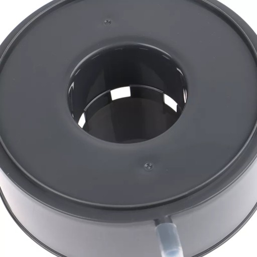 - Umieść przystawkę na wieczku, podłącz dołączony silikonowy wąż i włóż go do oddzielnego, żaroodpornego pojemnika. Jeśli wylot soku znajduje się w dolnej części przystawki, jest zainstalowany we właściwy sposób.