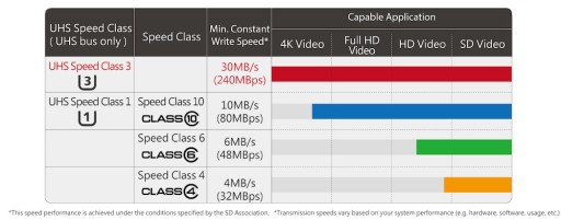 * microSDHC/XC spełnia lub przekracza wymogi SD Card Association SDA 3.0 co do specyfikacji Class 10