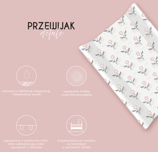 Przewijak usztywniany na łóżeczko dziecięce z serii Flower to jeden z najbardziej niezbędnych elementów wyprawki dla niemowlęcia.