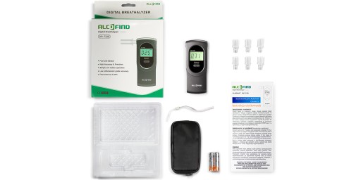 - Świeżo skalibrowany i gotowy do użycia alkomat DA 7100