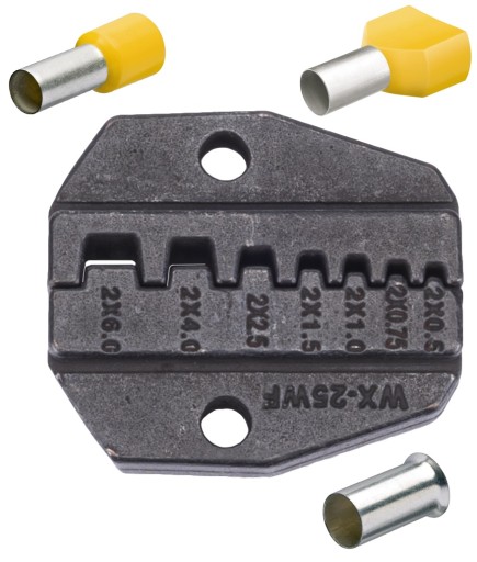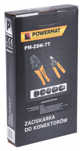 Zestaw zawiera szczypce automatyczne z regulowanym mechanizmem zapadkowym oraz z wymienne matryce dopasowane do pięciu rodzajów złączy elektrotechnicznych. Wymiana matryc odbywa się za pomocą odkręcania dwóch śrub.