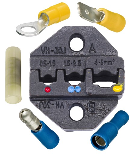 - Matryce automatycznie dostosowują się do rozmiaru zaciskanego konektora