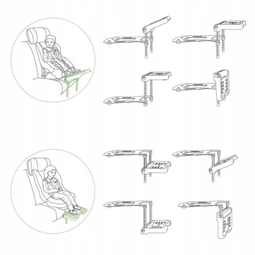nowoczesny podnóżek do fotelików samochodowych przodem do kierunku jazdy, bez bazy z nogą wspornikową.