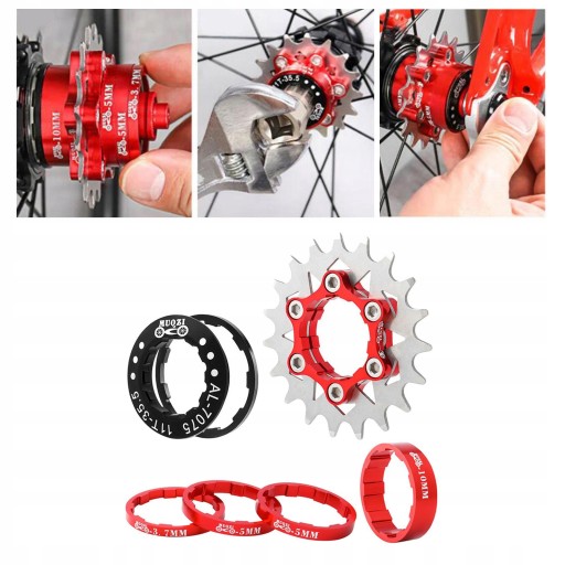 Rower 19T Single Speed Kaseta Dystanse Akcesoria Piasty Wolnobiegu Czerwony