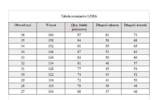 Szczegółowe rozmiary umieszczone są w tabeli poniżej.
