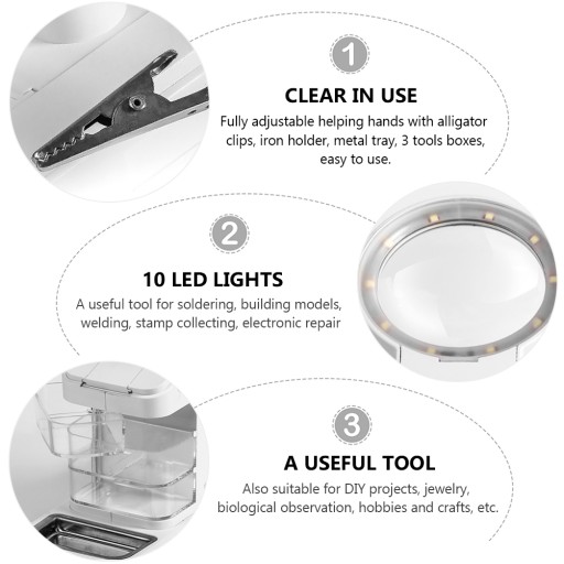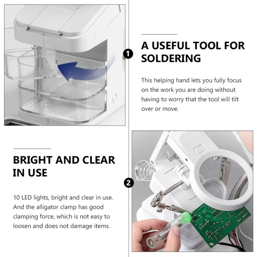 W pełni regulowane pomocne dłonie z krokodylkami, uchwytem, metalową tacą, 3 skrzynkami na narzędzia, łatwe w użyciu.