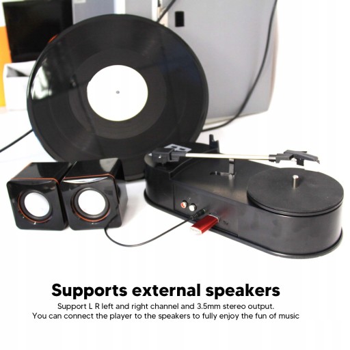 2. OBSŁUGA GŁOŚNIKÓW ZEWNĘTRZNYCH: Odtwarzacz Vintage może być używany jako samodzielny odtwarzacz, obsługujący lewy i prawy kanał oraz wyjście stereo 3,5 mm. Można podłączyć odtwarzacz do głośników, aby w pełni cieszyć się zabawą muzyczną.