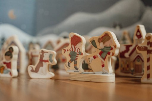 Codziennie w grudniu otwieraj paczkę z kalendarza adwentowego, aby w miarę zbliżania się świąt zbudować własne bożonarodzeniowe miasteczko. Możesz w nim jeździć na łyżwach, na sankach i odgrywać scenki z wykorzystaniem, uroczych, drewnianych figurek. Niech nadejdą Święta! Pudełko kryje w sobie solidne, kartonowe tło z ilustracjami o tematyce zimowej oraz 24 pudełeczka z prezentami zawierające 25 drewnianych figurek. Idealny pomysł na prezent, który umili czas oczekiwania na Boże Narodzenie.