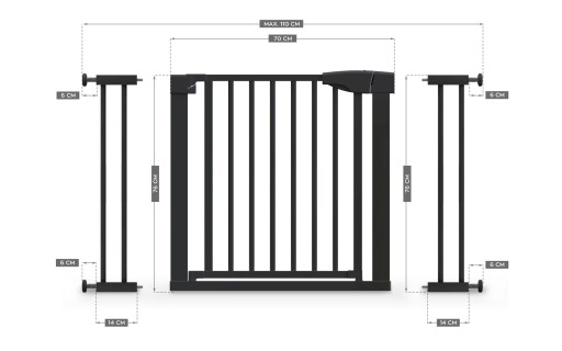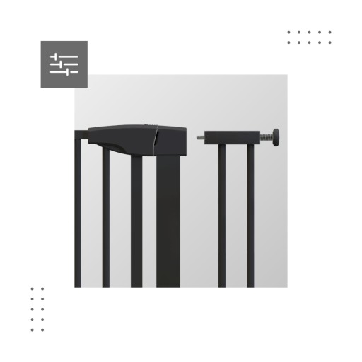 Mark Adler Guardian 3.0 oferuje niezwykłe możliwości regulacji szerokości, od 75 do 110 cm. Montaż jest prosty i bezproblemowy, bez konieczności wiercenia otworów w ścianie. Aby zwiększyć uniwersalność barierki, w zestawie znajdują się dwie przedłużki po 14 cm każda.