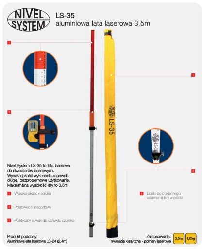 W pomiarach niwelacyjnych łaty stanowią element odczytowy, za pomocą którego ustalana jest wysokość lub różnica wysokości pomiędzy punktami. Dokładność wykonania opisów na niej i solidność konstrukcji mają ogromny wpływ na końcową dokładność niwelowanych punktów. Z kolei wysoka jakość wykonania (połączenia mechaniczne, blokady teleskopowe) decydują o trwałości produktów i ich bezawaryjności. W ofercie znajduje się pełny wachlarz łat niwelacyjnych - od precyzyjnych łat inwarowych do niwelacji precyzyjnej przez tradycyjne łaty drewniane, aluminiowe teleskopowe do specjalnych łat laserowych z podziałem milimetrowym.