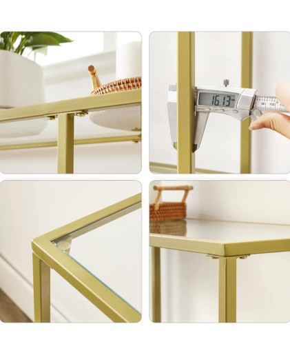 Trzypoziomowa konsola ze złotą ramą w stylu Art Deco, glamour.