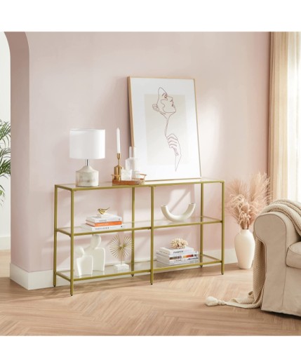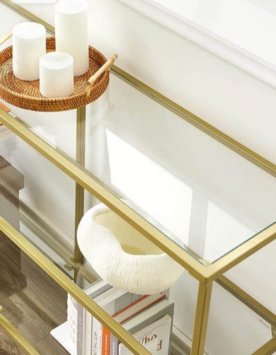 Metalowa konsola ze szklanymi półkami art deco glamour 130 cm