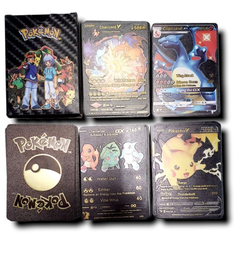 - Karty są zamiennikami popularnych kart Pokemon TGC i są w języku angielskim.