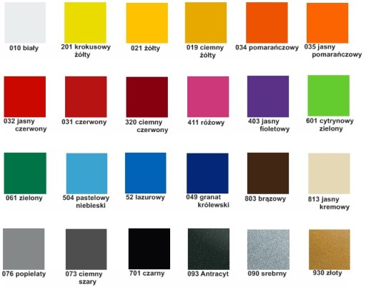 odcienie w rzeczywistości mogą się nieznacznie różnić. Jest to uwarunkowane różnym wyświetlaniem kolorów przez monitory
