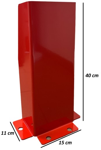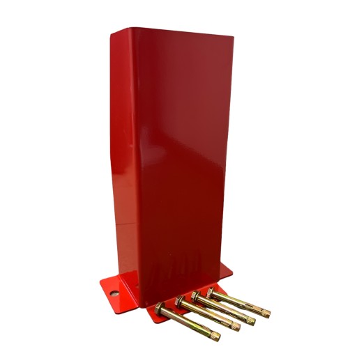 Odbojnica, osłona czołowa słupa regału paletowego– wykonane z blachy stalowej, kliku krotnie gięte i profilowane, malowane proszkowo, specjalnie otworowane pod montaż za pomocą kotew do posadzki.