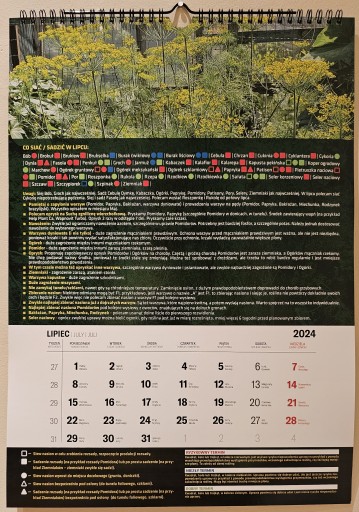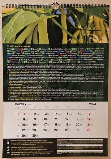 - Nie jest to zwykły kalendarz. Oprócz ładnego zdjęcia i dat kalendarz ma informacje, co siać i sadzić w każdym miesiącu. Ponadto są strony z następującymi informacjami: sąsiedztwo warzyw, głębokość siewu i sadzenia warzyw, rozstaw siewu i sadzenia warzyw.