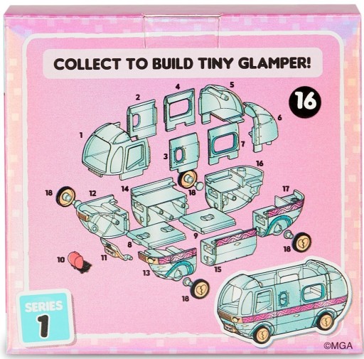 Odkryj LOL Surprise i zbuduj swój własny mini kamper z części. Każde pudełko zawiera jedną z 18 części potrzebną do złożenia kampera.
