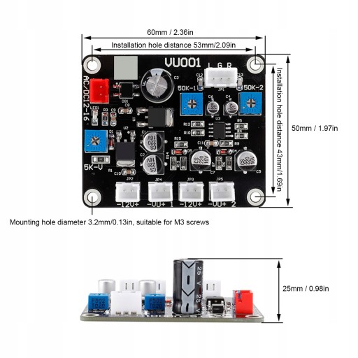 - Rozmiar miernika VU: około 15,5 x 4,8 x 3 cm/6,1 x 1,9 x 1,2 cala