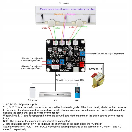 5. Płyta sterownicza może regulować jasność podświetlenia i amplitudę wychylenia wskaźnika.