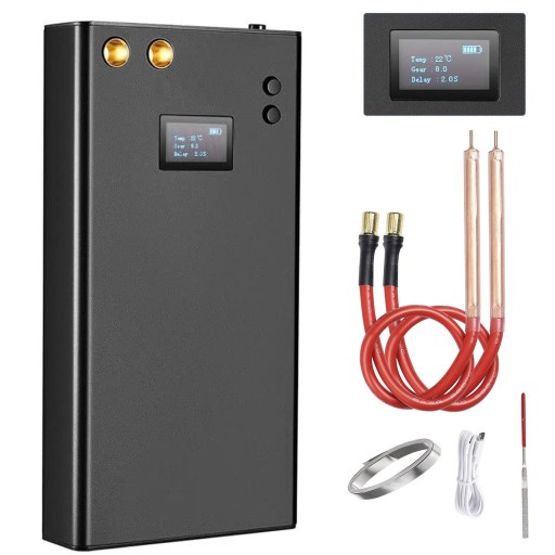 - 【Funkcja akumulatora 7500 mAh i power banku】 --- Ta mini zgrzewarka punktowa ma wbudowany akumulator 7500 mAh, który można w pełni naładować w ciągu 3 godzin. Może w sposób ciągły spawać tysiące punktów po pełnym naładowaniu z maksymalną mocą wyjściową 650 A. Może być używany jako przenośny akumulator do ładowania telefonu itp., przystępny cenowo dla przeciętnego hobbysty.Ładny i mały, dzięki czemu można go schować w torbie z narzędziami i nie zajmie dużo miejsca.