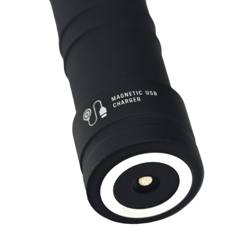 - Aby naładować: odkręć tylną pokrywę latarki o 1/4 obrotu i podłącz ładowarką magnetyczną