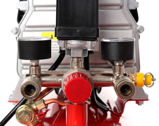 Ergonomiczny - posiada reduktor ciśnienia wyposażony w innowacyjny mechanizm regulacji, 2 duże manometry usytuowane na kompresorze w pozycji ułatwiającej odczyt parametrów oraz wygodny w eksploatacji kranik spustowy.