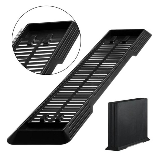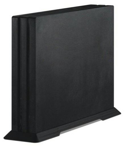 Podstawka do konsoli SONY PlayStation 4 PRO. Umożliwia bezpieczne ustawienie konsoli w pozycji pionowej. Posiada specjalne zatrzaski zabezpieczające konsolę przed wywróceniem. Gumowe stópki zwiększają ogólną stabilność konstrukcji oraz zapobiegające rysowaniu powierzchni. Delikatne podwyższenie (szczelina pomiędzy podstawką, a spodem obudowy) zapewnia odpowiednią cyrkulację powietrza.