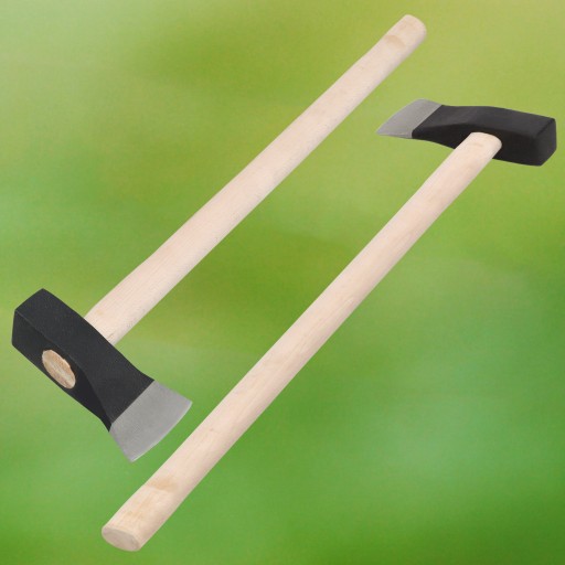 - Siekiero-młot z drewnianym trzonkiem ma część roboczą z solidnej stali.