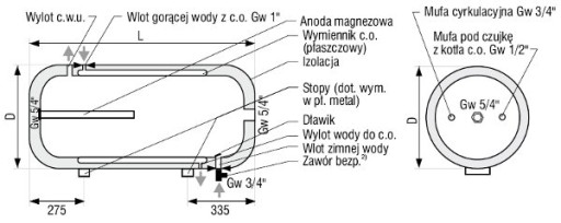 Zbiorniki posiadają wymiennik płaszczowy oraz mufę cyrkulacyjną i mufę pod czujkę z kotła c.o. w standardzie.