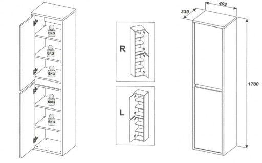 - możliwość montażu drzwi prawo-lewo