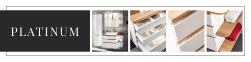 Kolekcja Platinum to nowoczesne meble w kolorze białym z akcentami w kolorze drewna, co sprawia iż meble prezentują się naturalnie i stylowo. Szafka pod umywalkę nastawną daje możliwość dopasowania umywalki do własnych potrzeb wizualnych i funkcjonalnych. Szafka wisząca z lustrem dopasowana do szafki pod umywalkę oraz słupek wysoki nadają zestawowi spójności.