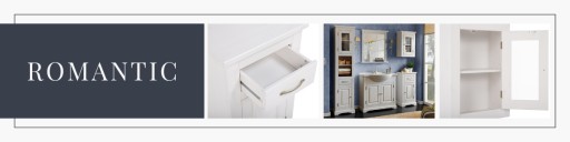 Meble z kolekcji Romantic cechuje delikatność i nieprzeciętne piękno, które wprowadzą błogi i przyjemny nastrój do każdej łazienki. Liczne elementy dekoracyjne takie jak żłobienia na strukturze frontów, ozdobne uchwyty oraz stylizowane zawiasy podkreślają romantyczny charakter całej kolekcji. Serię tworzą szafki o różnych wymiarach i przeznaczeniu. W zestawie oprócz szafek pod umywalkę znajdują się również szafki wysokie, niskie oraz wiszące. Ponadto oferta obejmuje gustowną witrynę i eleganckie lustro, dzięki którym bez wątpienia uda się skomponować wyszukane wnętrze. Wszystkie meble z kolekcji Romantic zostały wykonane z drewna, są solidne, trwałe i nie poddają się ciągle zmieniającym się trendom.