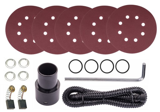 ✅ KOMPLETNY ZESTAW DO ROZPOCZĘCIA PRACY - Już teraz otrzymasz wszystko, co potrzebne, aby rozpocząć pracę! W zestawie znajdziesz 6 różnych papierów ściernych, wąż odpylający, worek na pył oraz zapasowe szczotki węglowe.