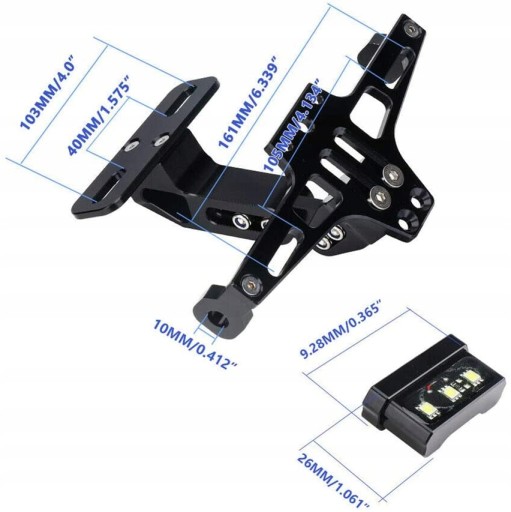 - Pasuje do: Harley, Suzuki, Yamaha, Honda, Victory, Kawasaki, Indian, Bsa, Triumph, April, Vespa i większości innych modeli z przewlekanymi wspornikami tablicy rejestracyjnej.