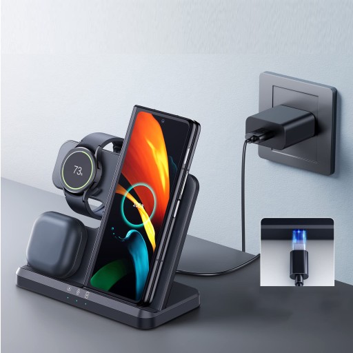 📲Szeroka kompatybilność - bezprzewodowa ładowarka 3 w 1, specjalnie kompatybilna z telefonami komórkowymi Samsung, zegarkami i zegarkami jednocześnie. Kompatybilny z Samsung Galaxy S22, S22 , S22 Ultra, S21, S21 , S21 fe, S21 Ultra, S20, S20 ,S20 Ultra, S20 FE,S10/S9/S8/S7/S6; Galaxy Z Flip,Flip 3, Flip 4; Fold2; Fold3; Galaxy Note 20, 10, 10e, 10 , 9, 8, 7, 5; kompatybilny z Samsung Galaxy Watch 5 Pro /5 /4 Classic/Galaxy Watch 4/3/Active2/Buds/Buds /Pro/Live/2; (Uwaga: nie nadaje się do zegarka Galaxy 5/5 Pro)