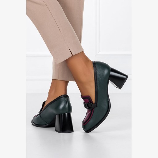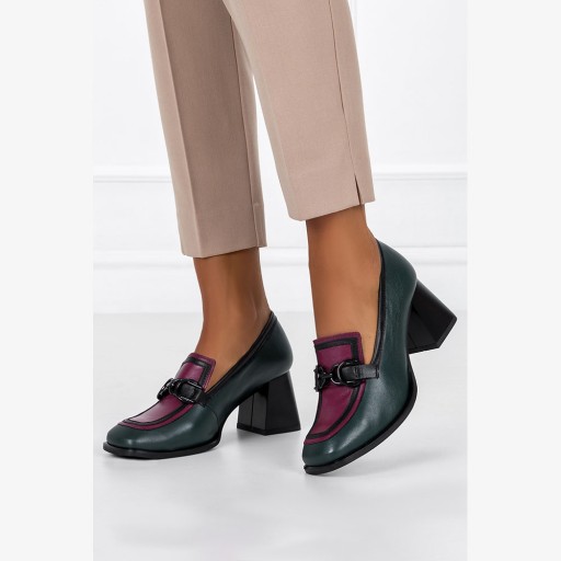 Zielone mokasyny damskie model 2637 zostały wyprodukowane w Polsce z najlepszych gatunków skór. Ręczne wykonanie butów gwarantuje doskonałą jakość, wygodę i dopasowanie do stopy. Wnętrze obuwia zostało wytworzone z wysokiej jakości skóry, która zapewnia maksymalny komfort użytkowania. Zielone mokasyny – klasyka w nowoczesnym wydaniu. Prezentujemy naszą najnowszą propozycję na Casu – mokasyny, które idealnie wpisują się w aktualne trendy modowe. Co wyróżnia nasze mokasyny na tle innych? Przede wszystkim obcas klocek. Dzięki niemu nie tylko zyskujesz na wysokości, ale także zapewniasz sobie komfort chodzenia przez cały dzień. Nie można przejść obojętnie obok bordowego przodu ozdobionego subtelną sprzączką. Ten detal dodaje im elegancji, ale jednocześnie zachowuje nieformalny charakter typowy dla mokasynów. Sprzączka to drobny, ale wyraźny akcent, który przyciąga wzrok i podkreśla indywidualny styl właścicielki. Czubek kwadratowy to kolejny atut tych butów. Nie tylko dodaje im charakteru, ale także gwarantuje większy komfort dla stóp. Jeśli masz szerszą stopę lub po prostu cenisz sobie wygodę, nasze mokasyny będą dla Ciebie idealne. Zielony kolor to uniwersalność, która pasuje do wielu stylizacji. Chociaż mokasyny kojarzone są głównie z luźniejszymi, codziennymi zestawami, te doskonale sprawdzą się także w bardziej formalnych okolicznościach. Dzięki nim poczujesz się pewnie i stylowo w każdej sytuacji. Zapraszamy do zakupu i przekonania się na własne stopy, jak wyjątkowe są nasze zielone mokasyny. Dla kobiet, które cenią klasykę połączoną z nowoczesnymi trendami, będzie to strzał w dziesiątkę!